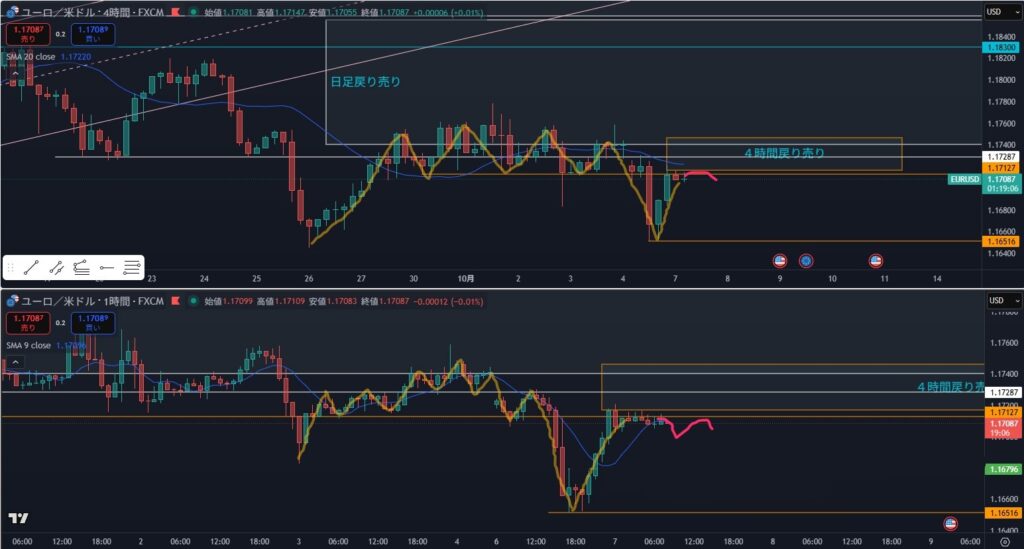 - 日足は引き続き戻り売りを狙って下位足を見る