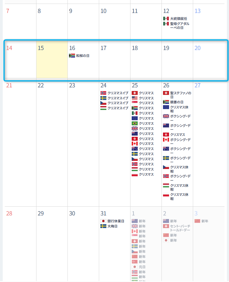 今週の指標・休場