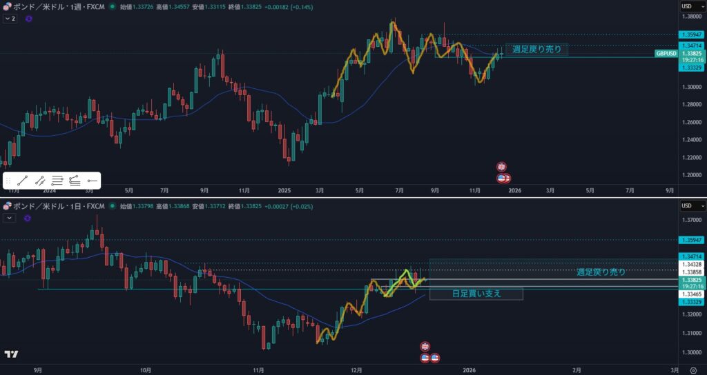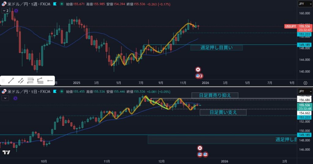 - リスク:日足MAの売り抑え
