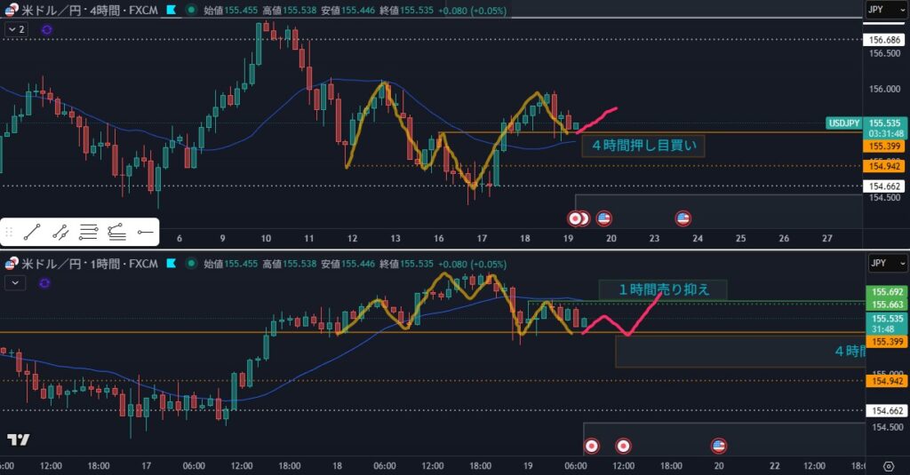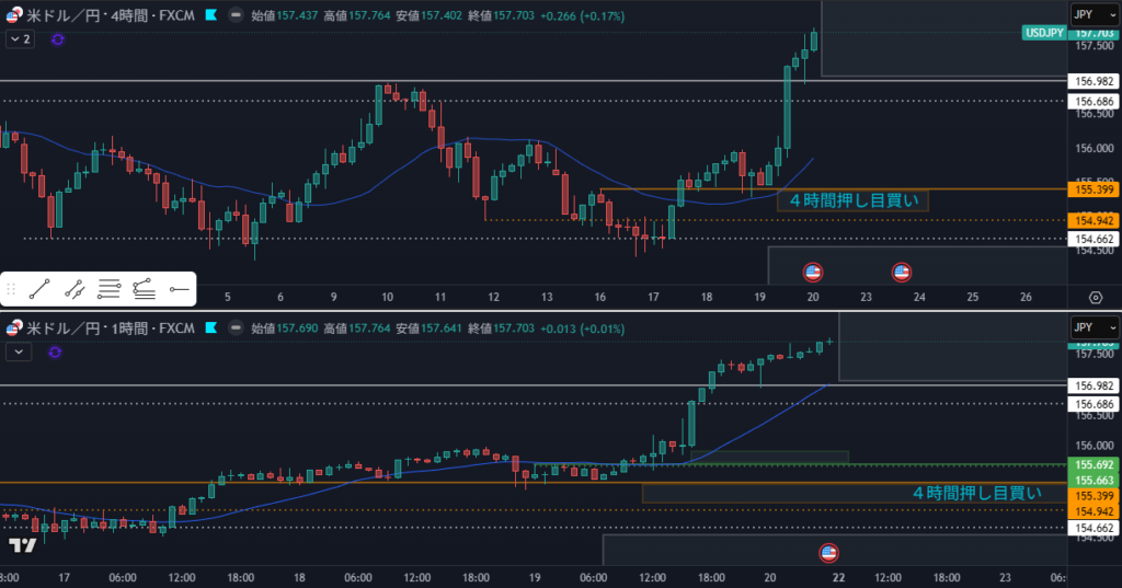 - 狙い:4時間の押し目買い