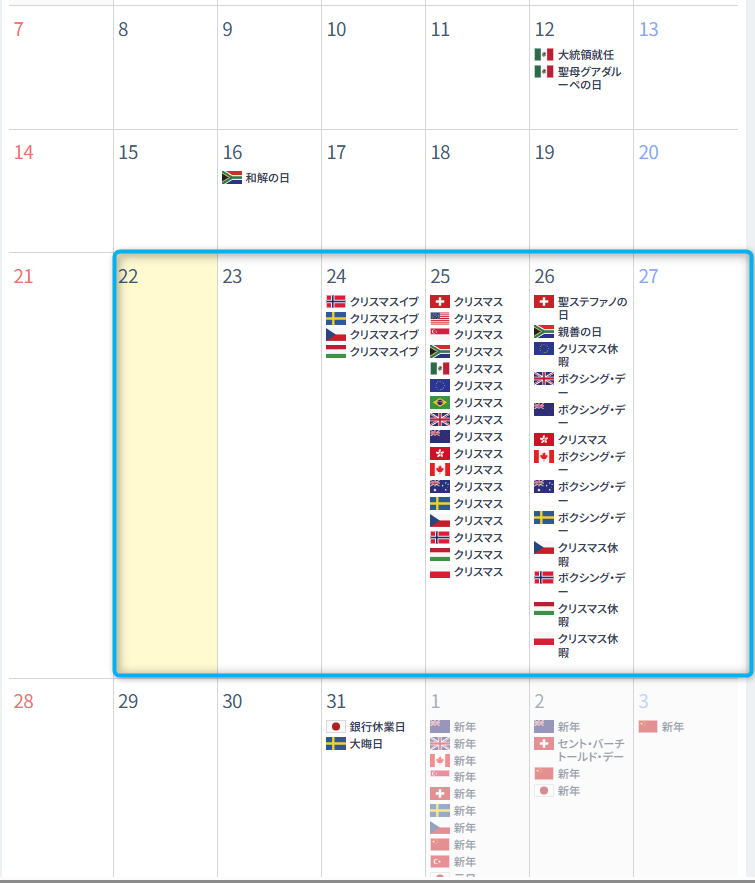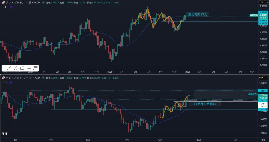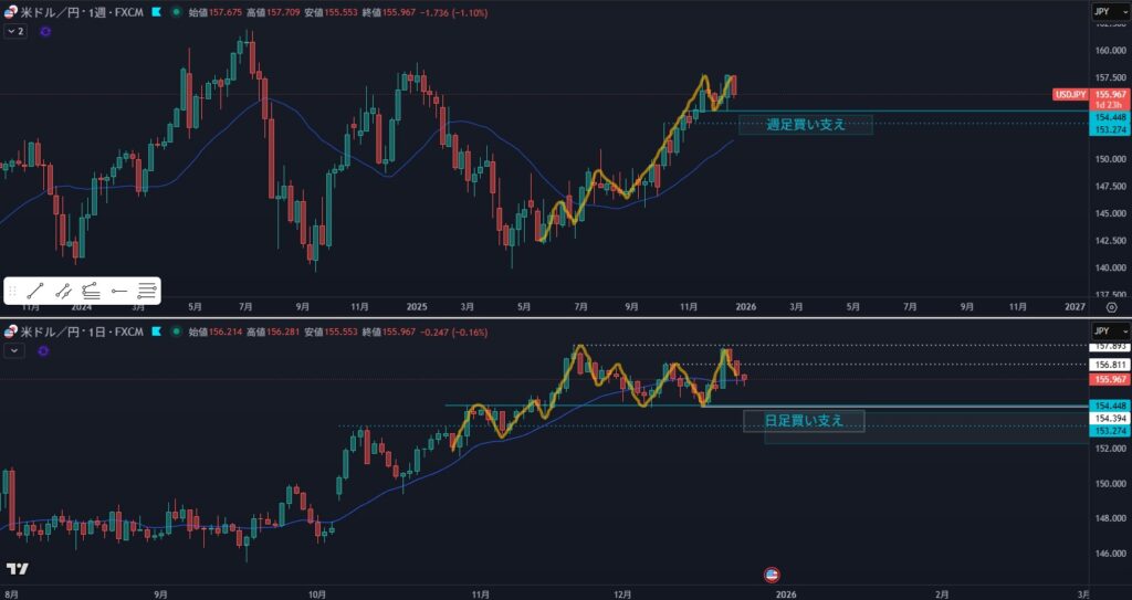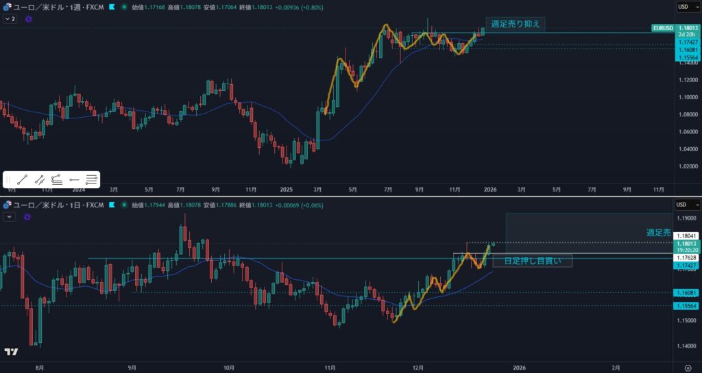 クリスマス休暇明けの今週末から月末にかけて、月足年足を意識した調整が入る可能性あり