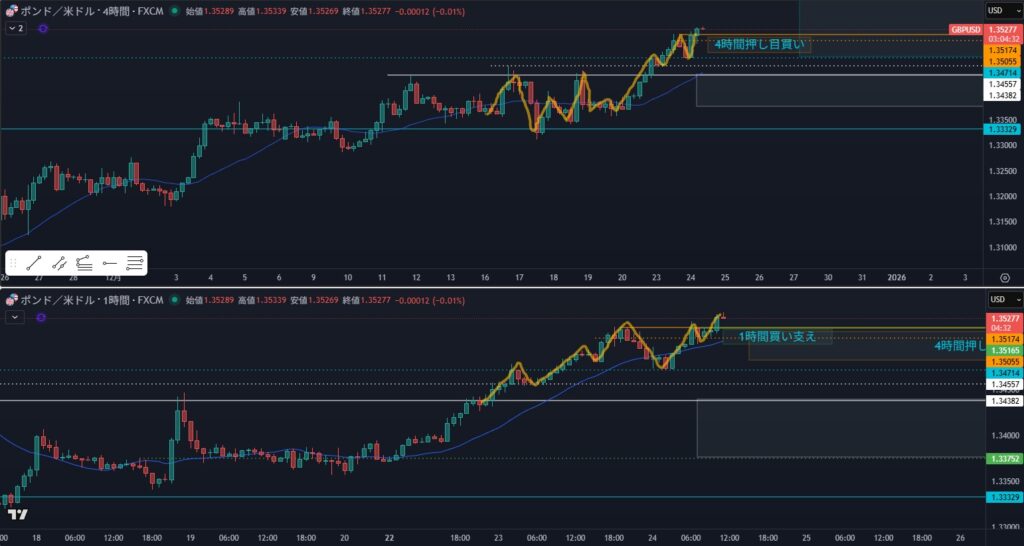 - 狙い:狙わない、4時間の方向感が出るのを待つ