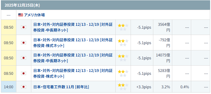 - クリスマス休暇という事もあり、今日はこの辺でどっちつかずの動きになる可能性あり