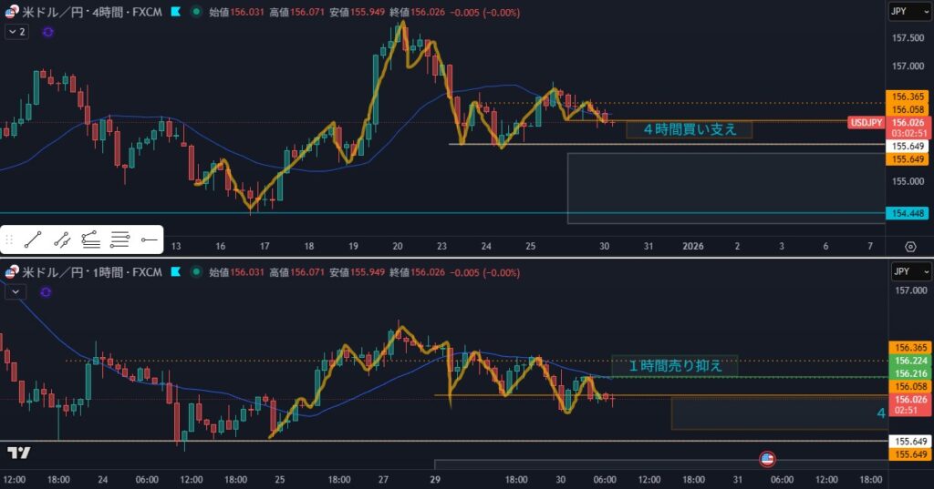 - 狙い:4時間押し過ぎ1時間トレンドフォロー