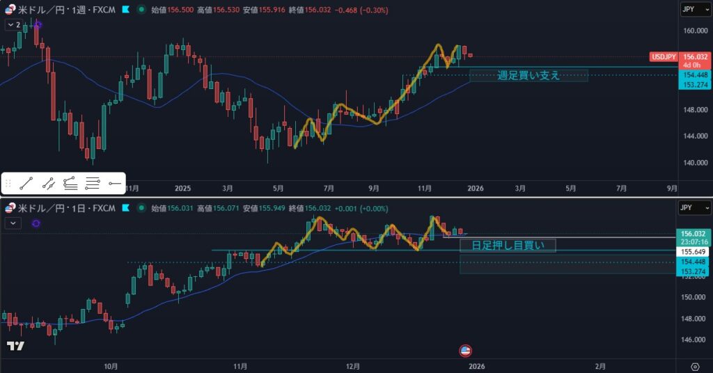 - 日足の押し目買いは考えない、下位足で判断したい