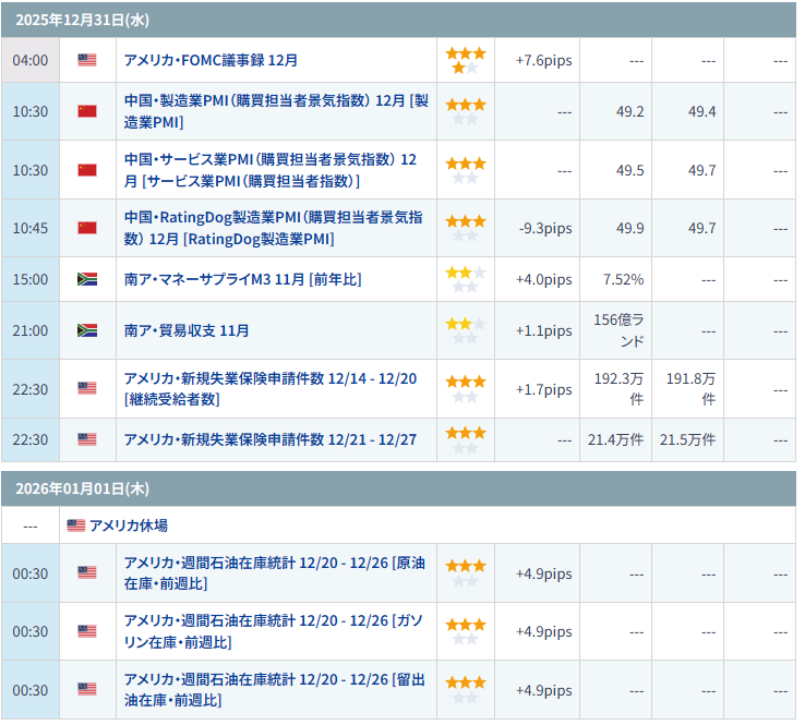 今週の指標・休場