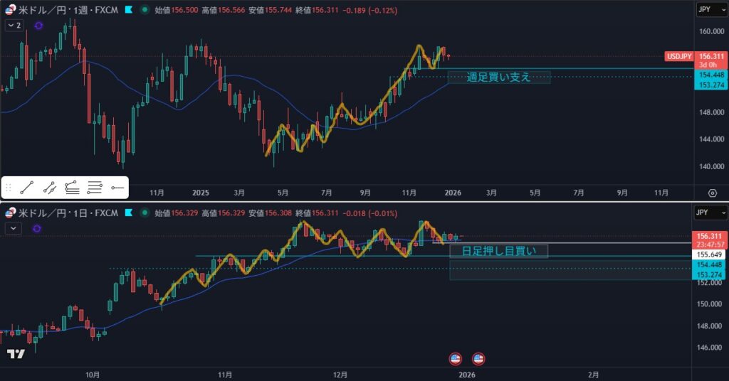 - 日足の押し目買いは考えない、下位足で判断したい