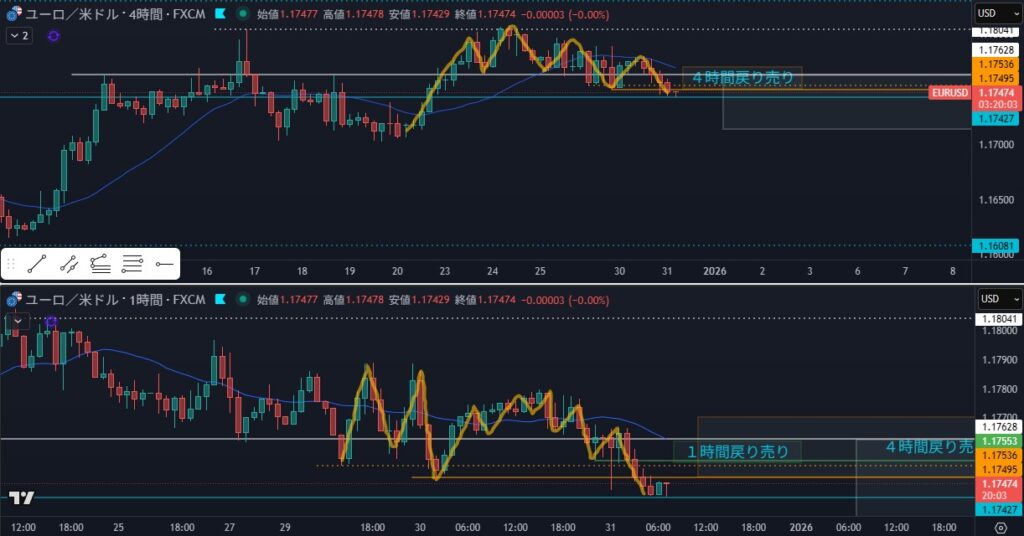 - 狙い:4時間の押しを待つ