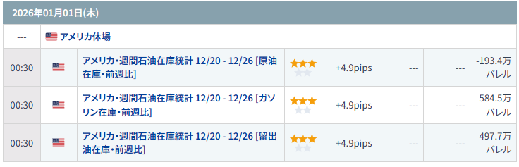 - リスク:日米休場
