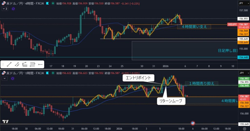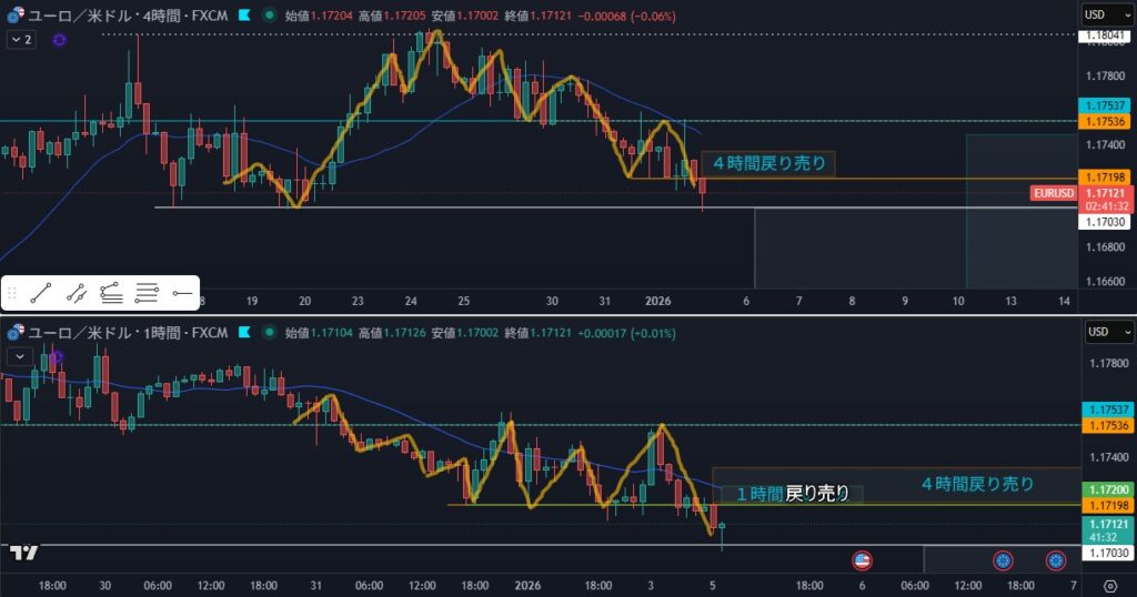 - 売り買いどちらにせよ4時間のトレンドフォローを待つ