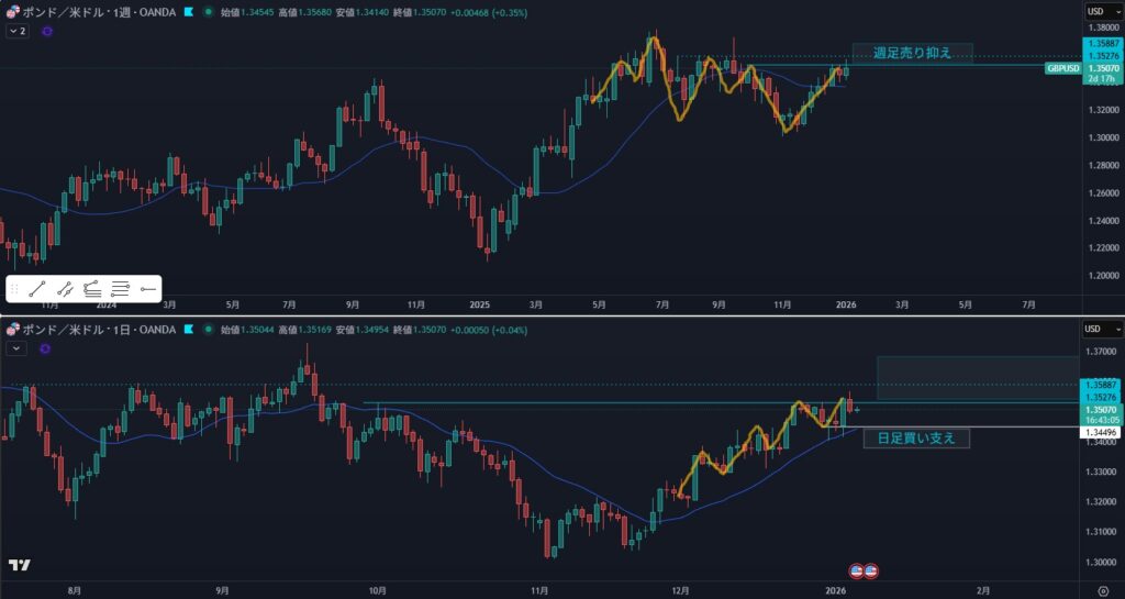 - リスク:週足売り抑え