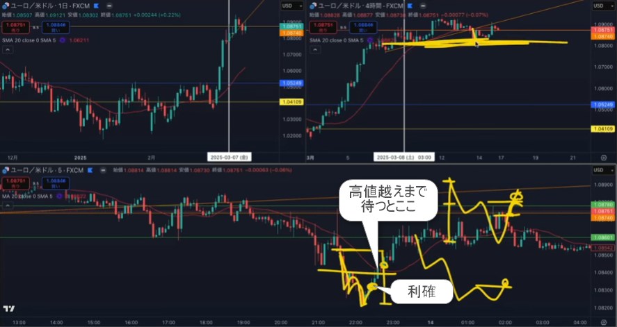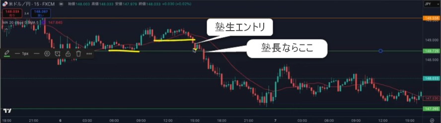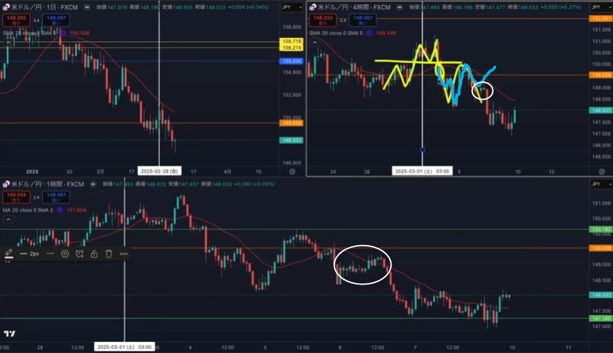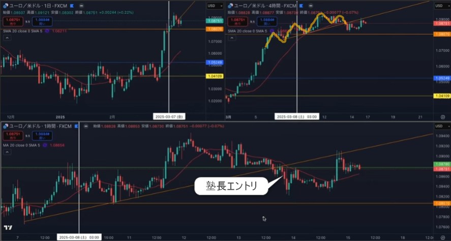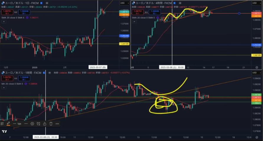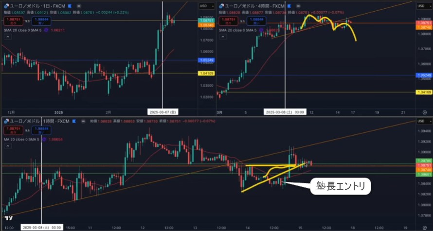 この後15分足での解説もあったけど、どうやら1時間足で説明しているポイントと15分で言ってるポイントがズレてると思うので省略