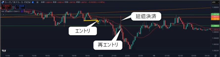 4時間の斜め抜け&1時間の戻り売りを狙ったエントリ