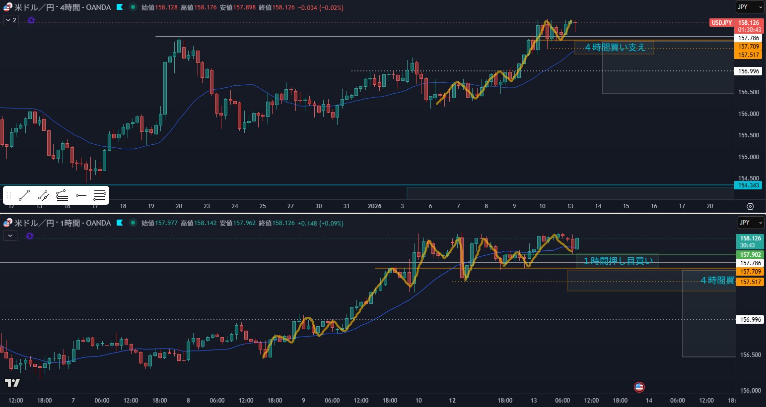 - 狙い:4時間押し目買い