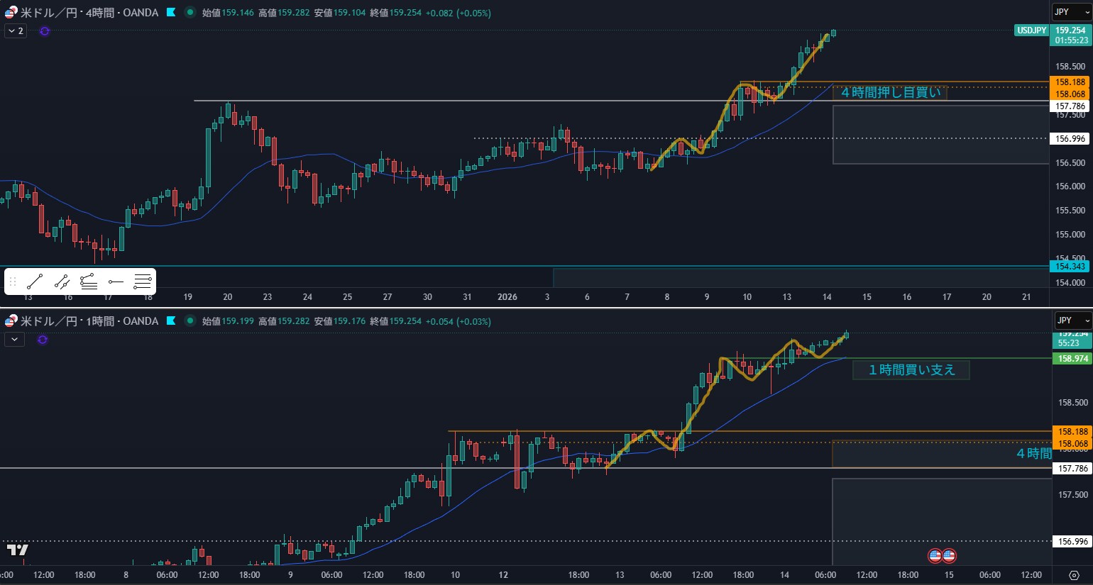 - 4時間の押し、攻防ラインが出来るか見ていく