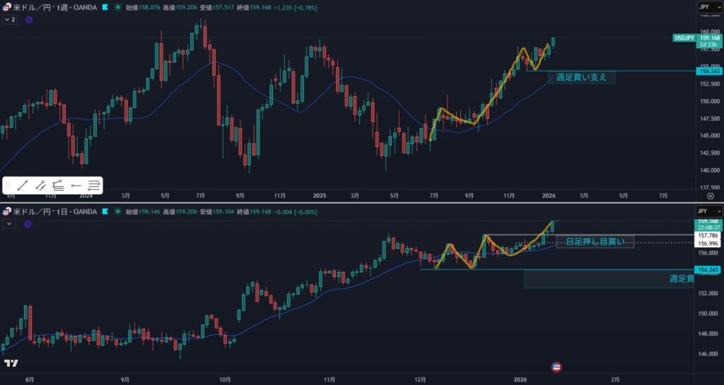 - 買いを考えるが、週足月足の高値圏であることに注意