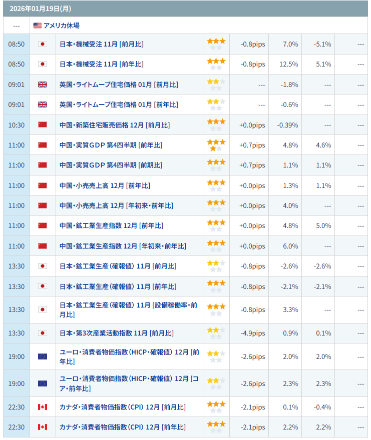 今週の指標・休場