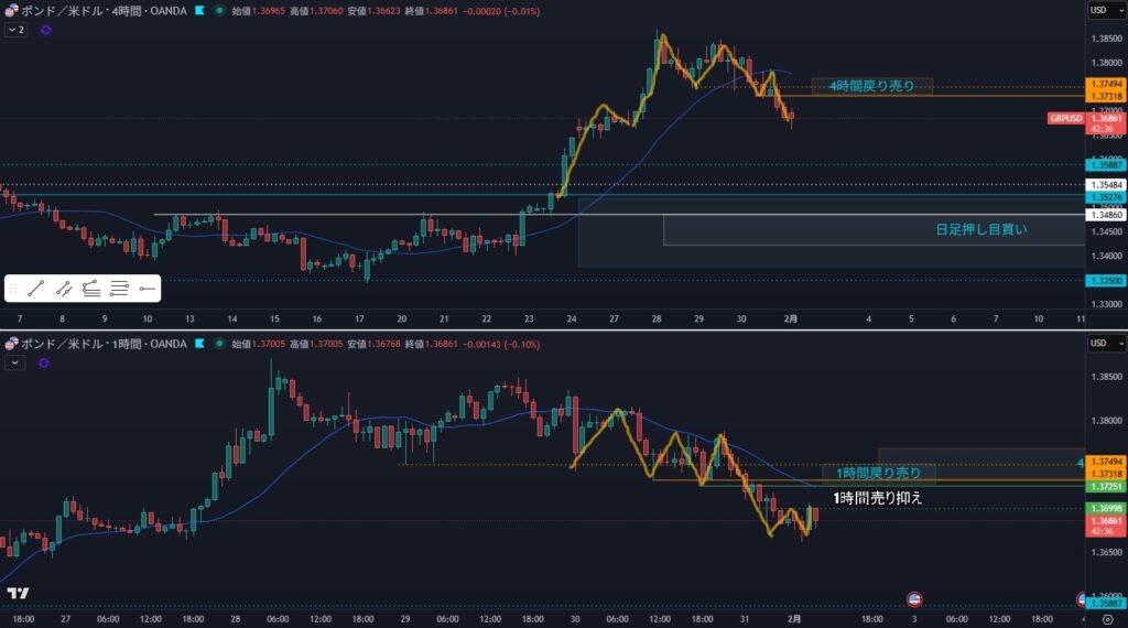 - 狙い:4時間戻り売り