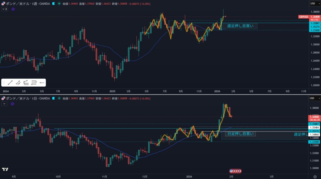 - オレンジラインの下に押し目買い勢力