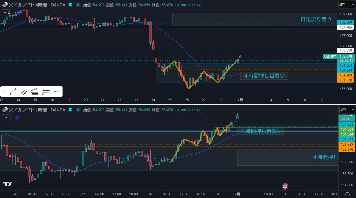 - 狙い:4時間の押しを待つ