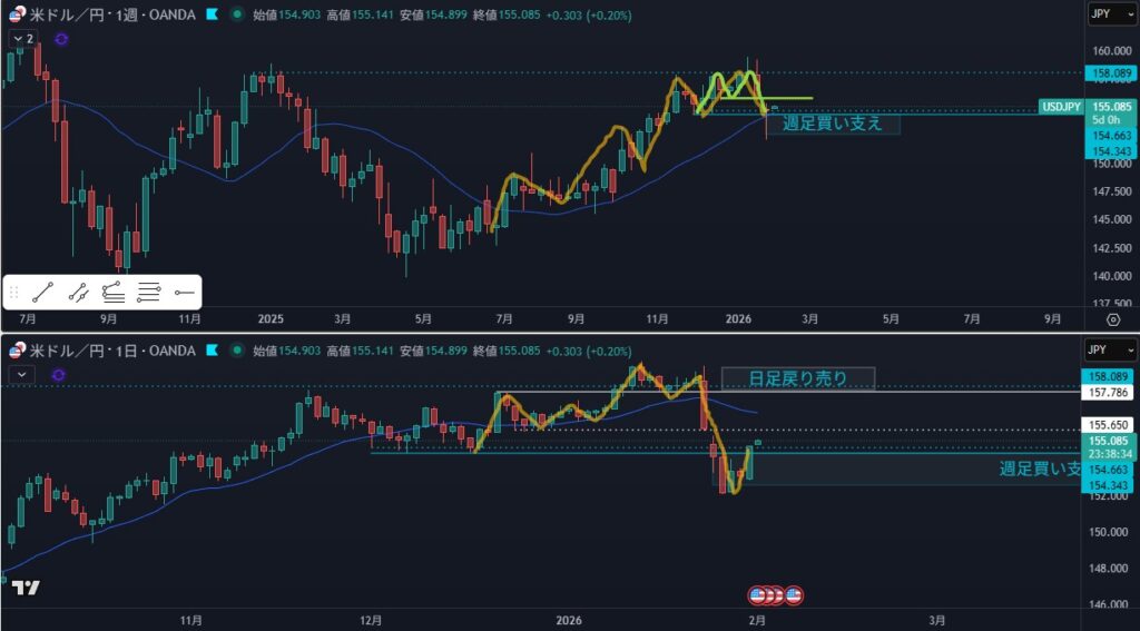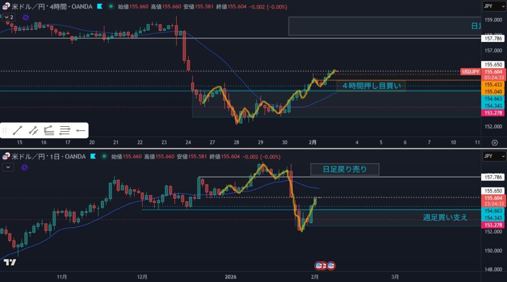 - リスク:日足の節目が分かりにくい、日足の買い支えがありそう(ステルス?)