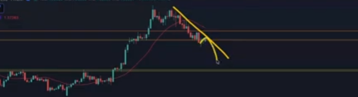 4時間足。この斜めを抜けたら斜め抜けの1波を狙えるか?まだ早い。