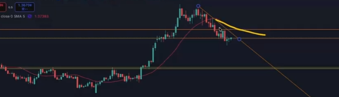 4時間足。ヒゲを折るか折らないかで押し目買いラインが変わってくる。自分はどの波を狙うのか、押すまで待つのかどうか、どうしたいかを考える。
