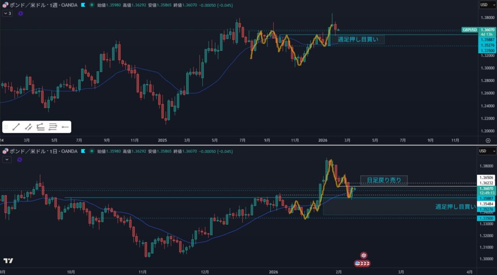 - オレンジラインの下に押し目買い勢力