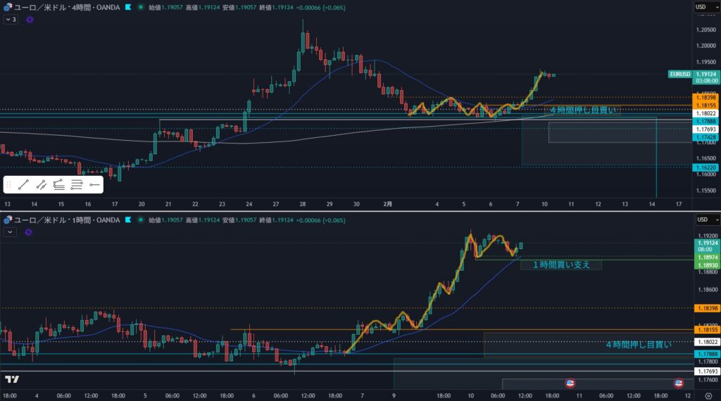 - 狙い:4時間の押しを待つ