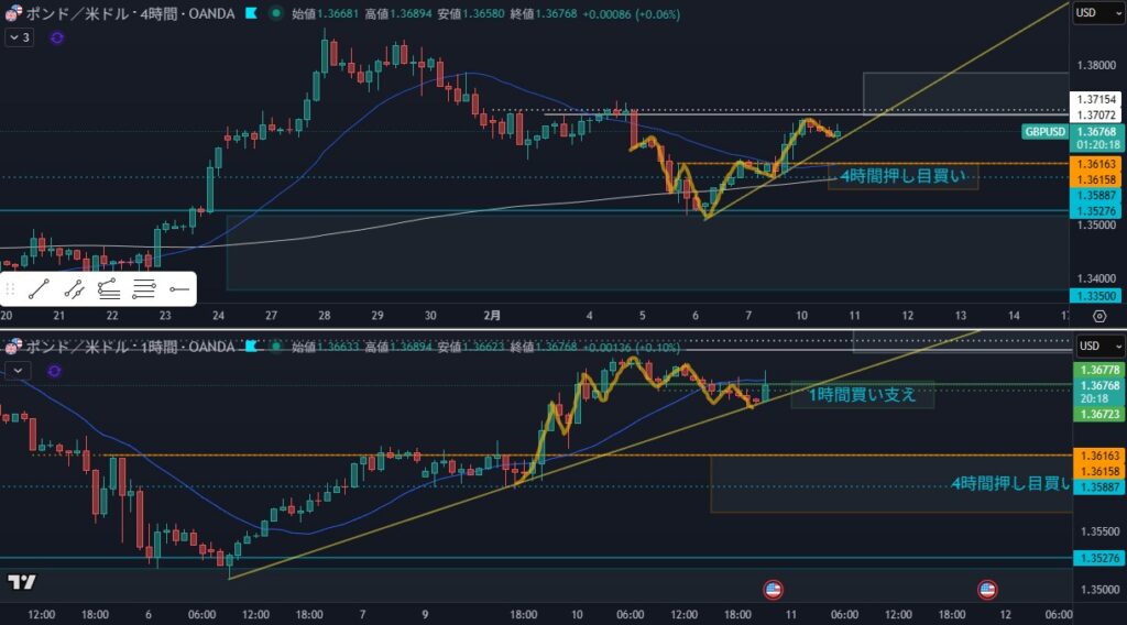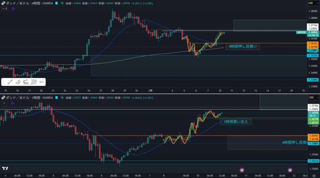 - 4時間の押しの1波を狙うかどうか見ていく