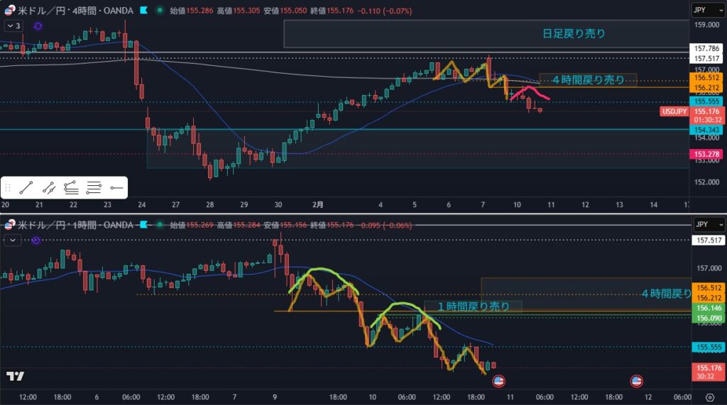 - 狙い:4時間戻り売り