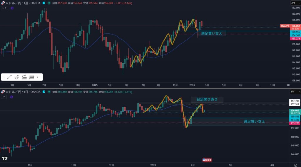 - 日足は戻り売りが入りやすいエリアに入った