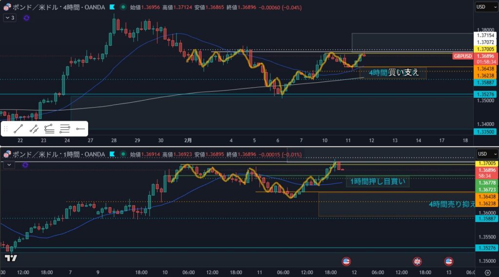4時間 方向上 押しを付け始めたかも