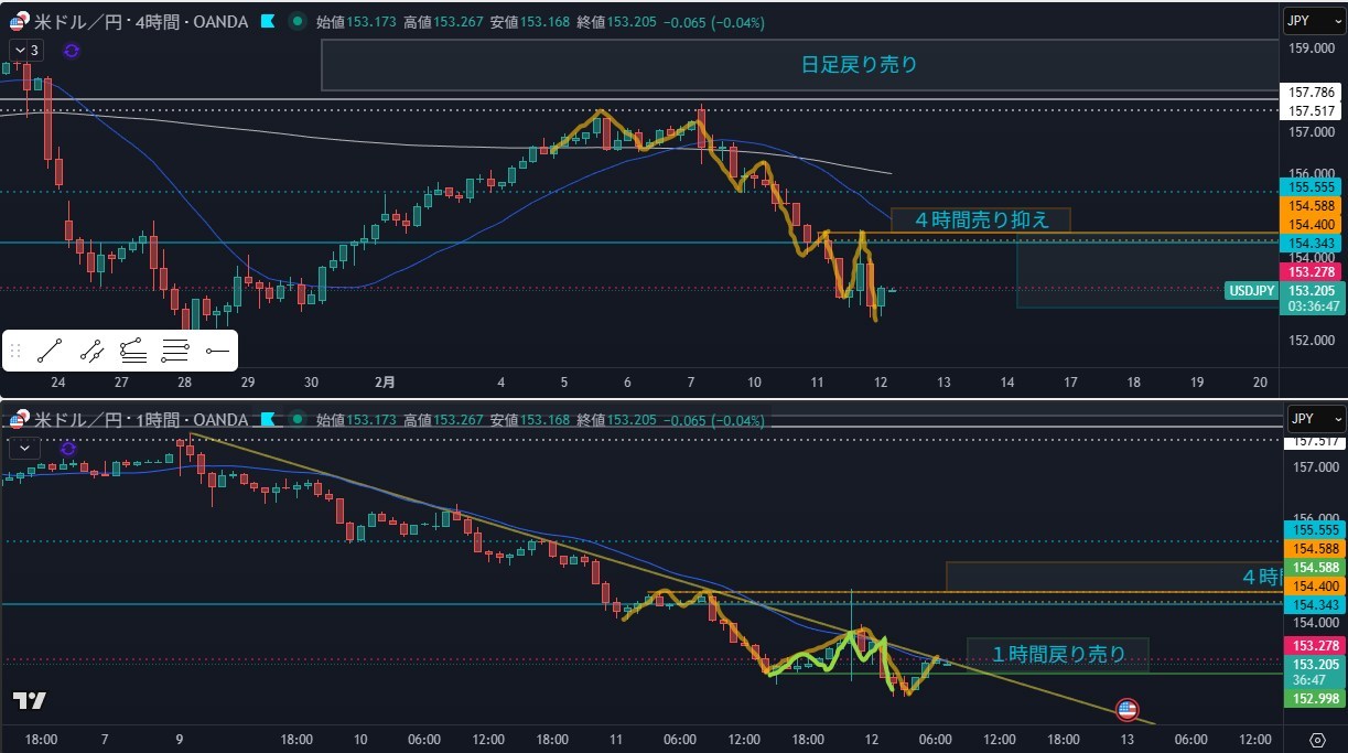 - 戻り売りを見ていくが、日足MAが邪魔になる