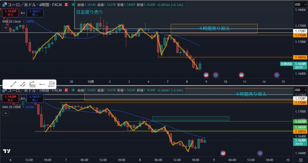 - 日足は引き続き売り目線で4時間を見る