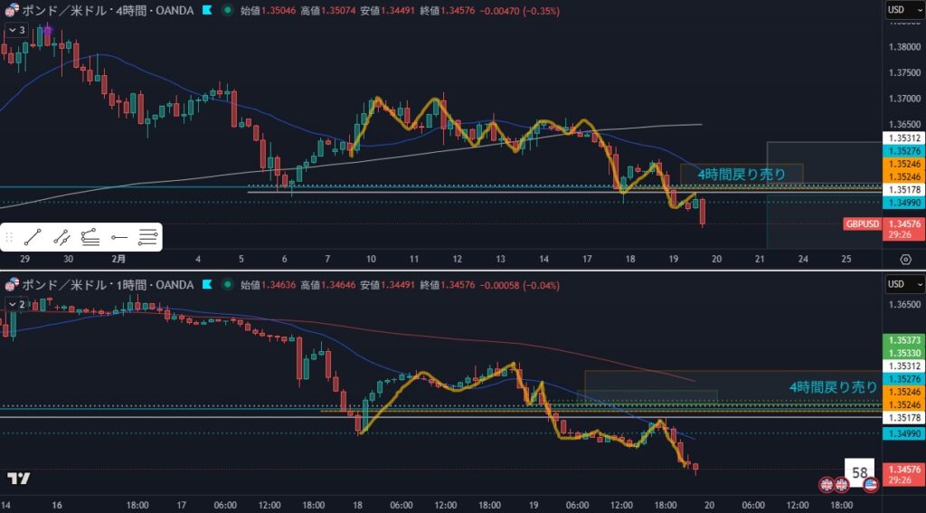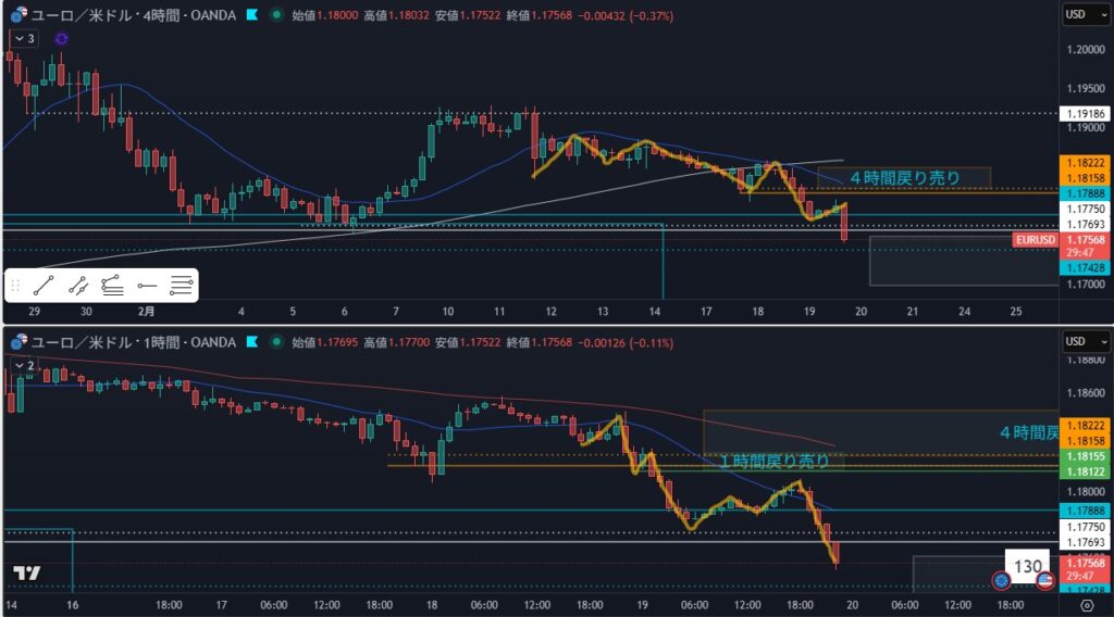- 狙い:4時間戻し待ち