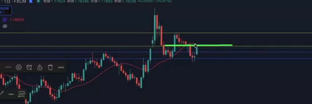 日足。週足の押し目買いと日足の戻り売りがぶつかるエリア