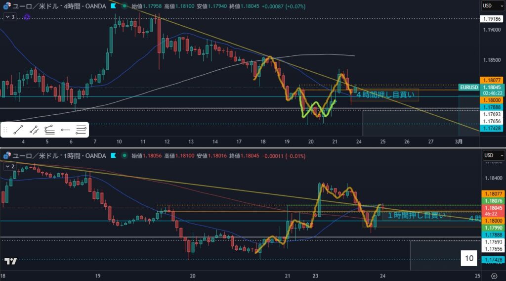 1時間は黄緑ダウにも見えるから押し目買いが入るんじゃないかと思ってスルーしている