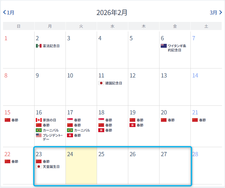 今週の指標・休場