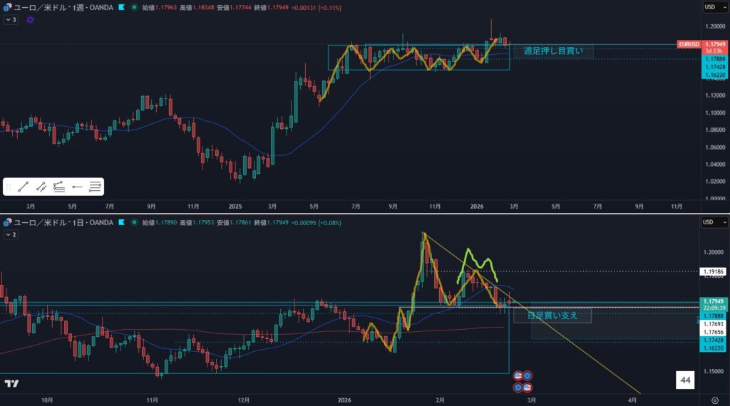 - 黄緑ダウにも見える、MAと距離がある為越えていく可能性も考える