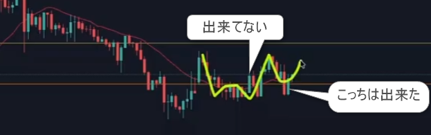 右側の全戻しじゃなくてヒゲ扱いは出来てたけど、その前の前々回高値のところはこう見れてなかった