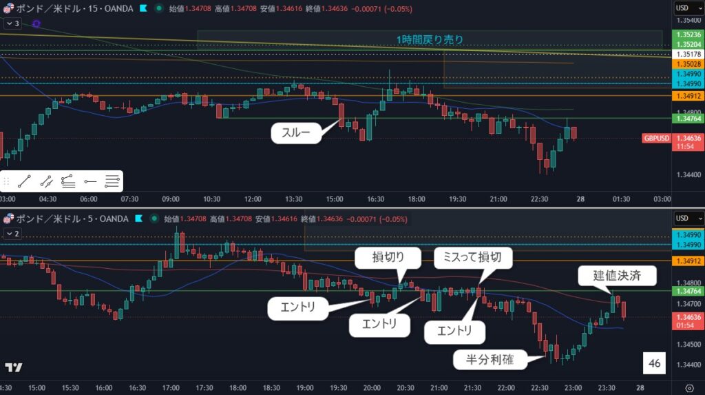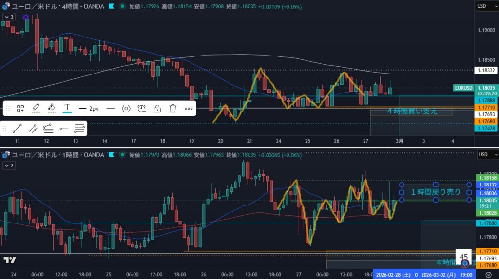 - 狙い:4時間戻り売り