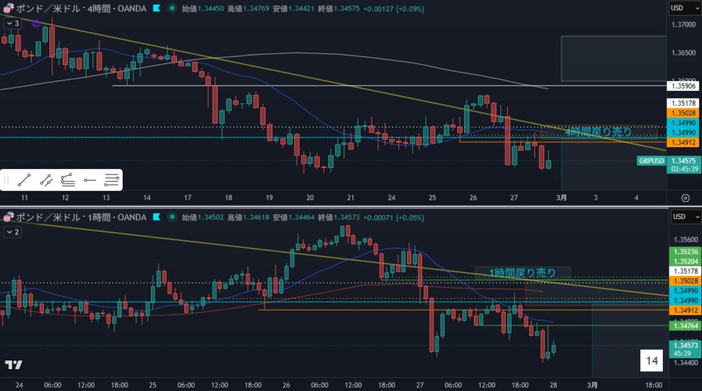 4時間の戻り売りを狙ったエントリ