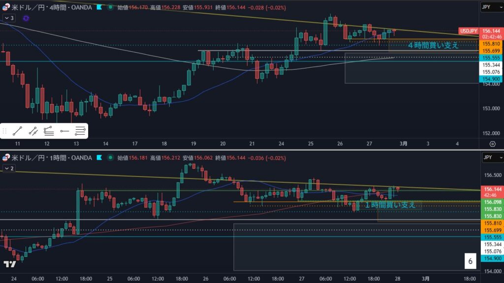 - 白ラインの下に買い支え勢力