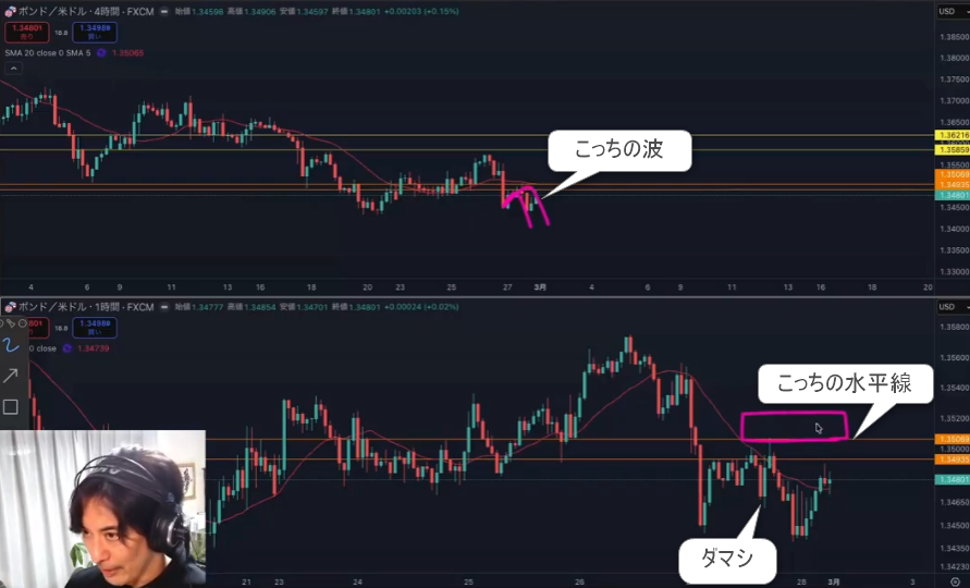 1時間の押しなのか4時間の押しなのか流れで判断できるようになりたい。これも直観だと思う。