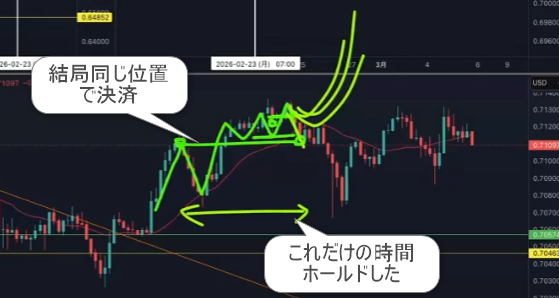 これだけの時間ホールドして結局同じ位置で決済かよ、やってらんねーな!とは思わない!