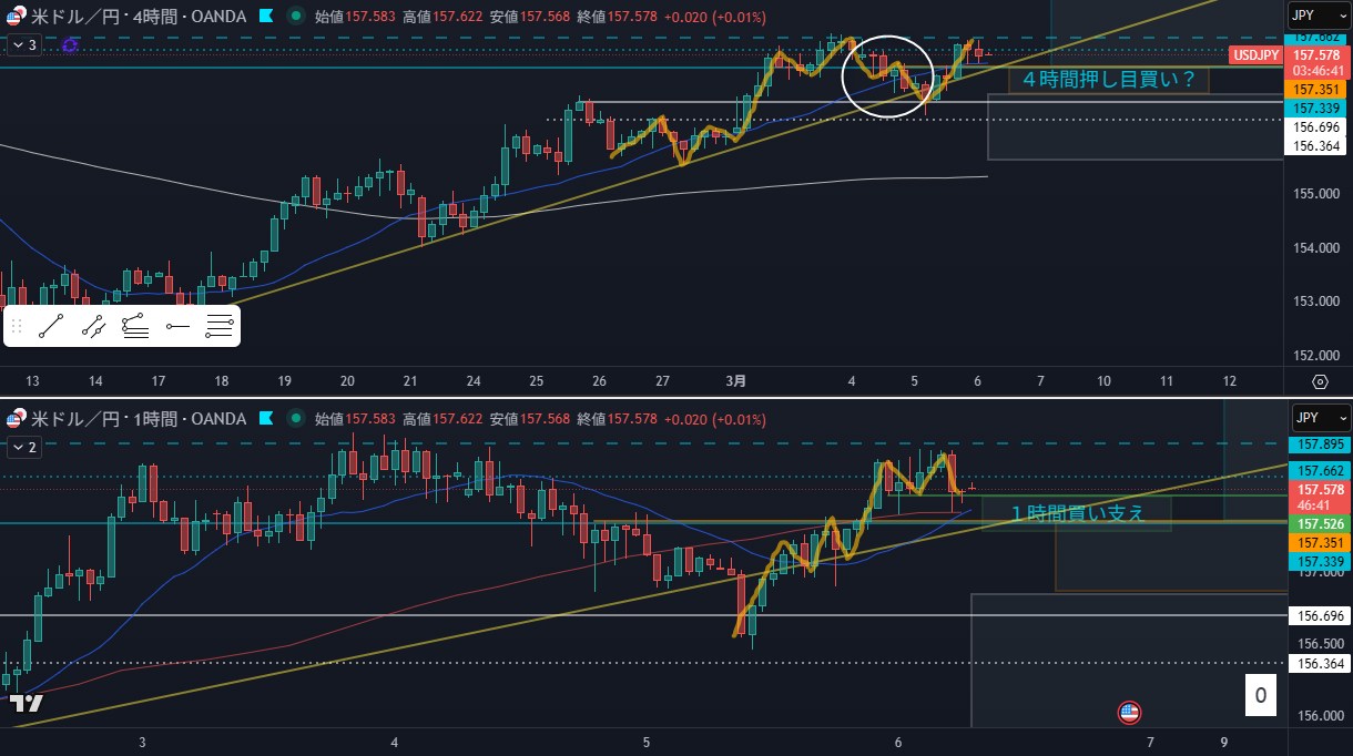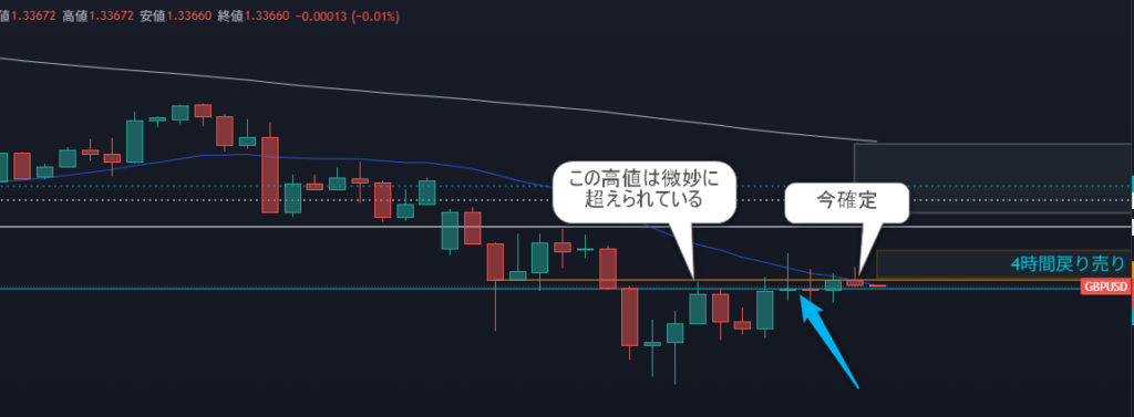 - 狙い:4時間戻り売り狙い(狙えるのか見極める段階)