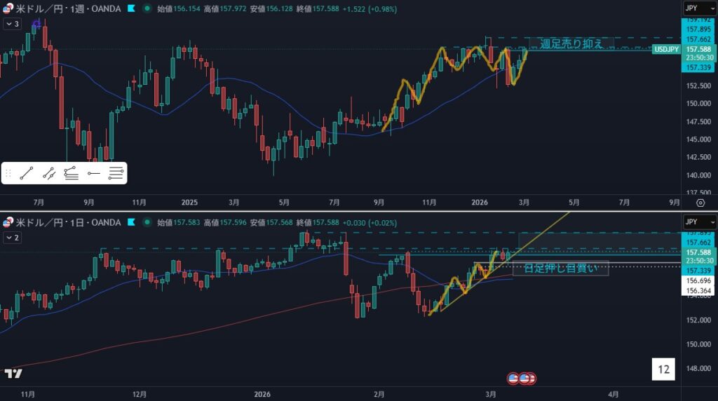 - 日足の押し目買いエリア、戻り売りは狙わない