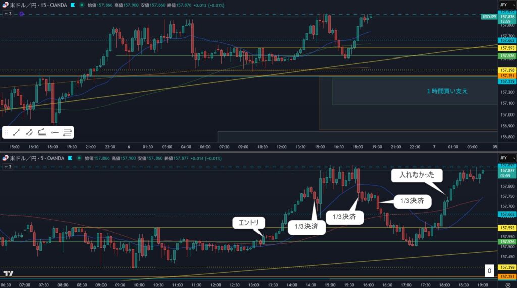 エントリポイントを5分で実体抜けしたら全決済かなぁ、これはまだルール化出来ないが一旦その感じでやってみよう