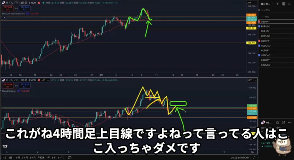 4時間足が上目線、このカウントの人は1時間戻り売り入っちゃダメ